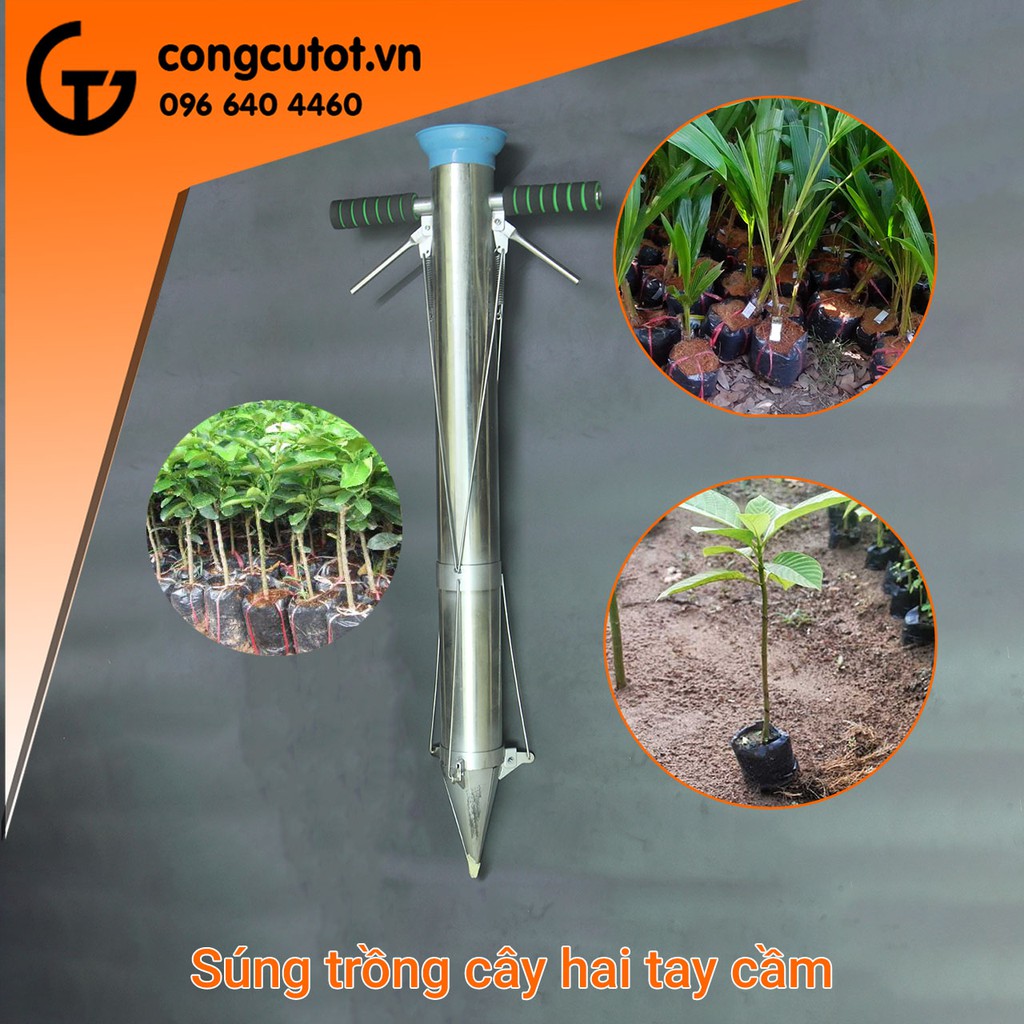 Súng trông cây 2 tay cầm là dụng cụ trồng cây con , gieo hạt giúp chúng ta gieo trồng một cách nhanh chóng và hiệu quả.Súng trồng cây 1 tay cầm giúp giảm sức lao động tối đa, được làm tư inox chống gỉ, rất sáng và chắc chăn .Có thể gieo trồng được nhiều loại cây giống,hạt mầm : hạt đỗ, hạt ngộ, thóc,cà chua...