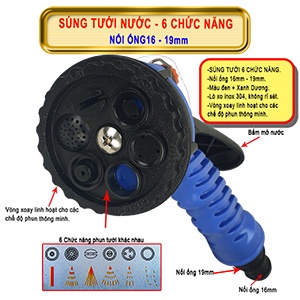 Súng tưới nước 6 chức năng nối ống 16-19mm