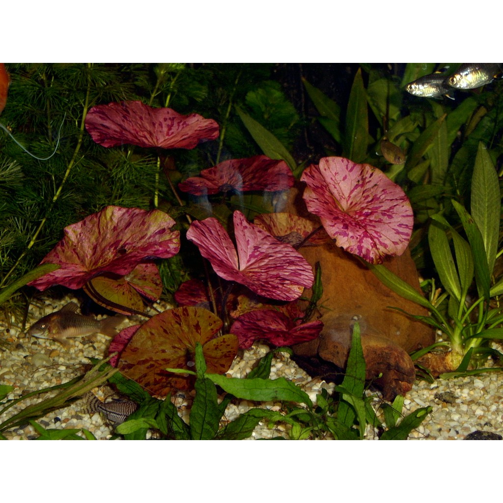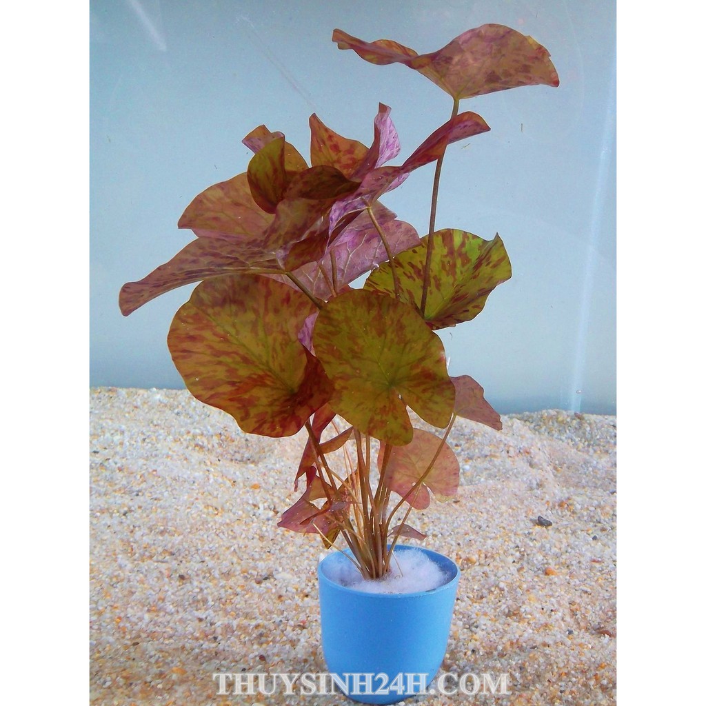 Cây súng xác pháo – súng đỏ là loài cây thủy sinh rất được ưu chuộng trong giới thủy sinh. Với màu đỏ đậm có gân và tùy theo ánh sáng chúng sẽ biến nhạt dần sang màu xanh lá rất đẹp, ngoài ra súng xác pháo với thân là nhánh mảnh mai nhưng lá lại rất to tròn đều, đôi khi có những lá vươn thẳng lên mặt nước rất đẹp. Đối với những người mới tập chơi thủy sinh thì súng xác pháo – súng đỏ là dòng cây họ súng dễ chăm sóc và trang trí trong hồ.Cây súng xác pháo - súng đỏ trong hồ thủy sinh