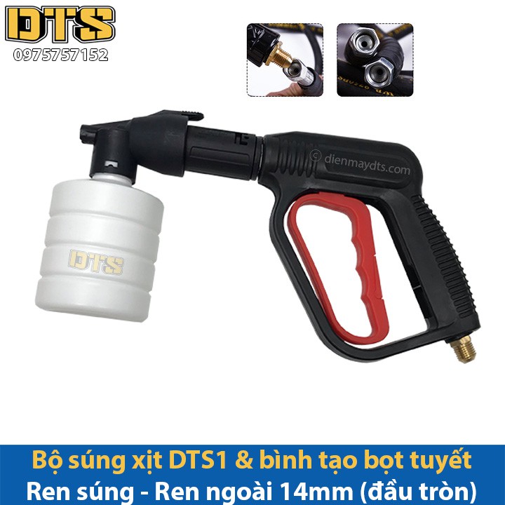 Bộ súng xịt DTS1 Ren ngoài 14mm - Đầu ren tròn và bình tạo bọt tuyết cho máy rửa xe áp lực cao, máy xịt rửa cao áp