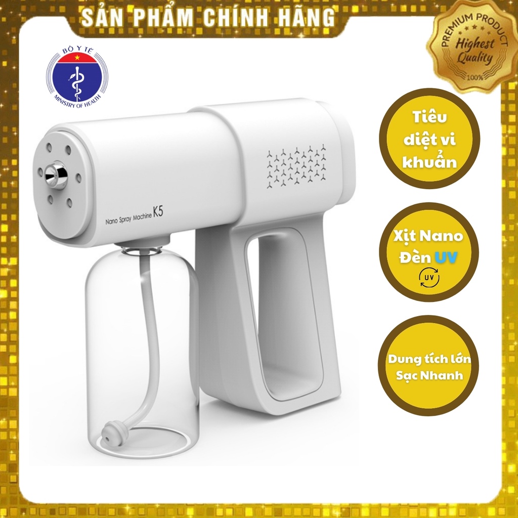 Súng xịt khuẩn - Máy phun sương Nano cầm tay DIỆT vi khuẩn Virus tia UV an toàn cho béMáy phun sương Nano diệt khuẩn ở nhiệt độ thường, tia nước phun sương cực mịn, không cặn.