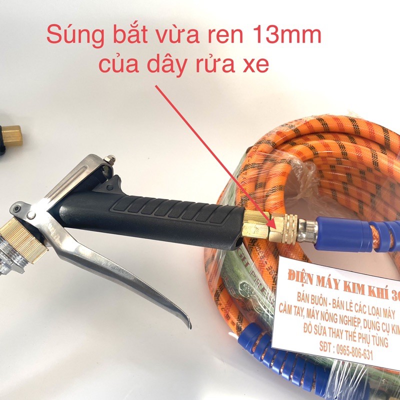 súng xịt rửa áp lực cao chân ren bé 13mm lắp cho dây xịt rửa nối ren ngoài 13mm của máy rửa xe oto, xe máy, máy xịt rửa chuồng trại.- Vỏ ngoài: Nhựa ASB cứng, chịu va đạp tốt