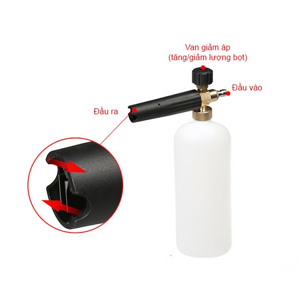 Khi rửa xe bạn mất rất nhiều thời gian cho việc đổ xà phòng lên xe rồi lau chùi hoặc bình xà phòng phun bọt tuyết đi kèm theo máy rửa xe tạo bọt chưa nhiều khiến bạn không hài lòng hay đơn giản là mỗi lần rửa xe bạn muốn phun bọt tuyết phủ trắng toàn bộ xe trông thật đẹp mắt & chuyên nghiệp Bình tạo bọt tuyết gắn súng phun rửa áp lực sẽ là lựa chọn lý tưởng cho bạn.- Thông tin bình tạo bọt tuyết: