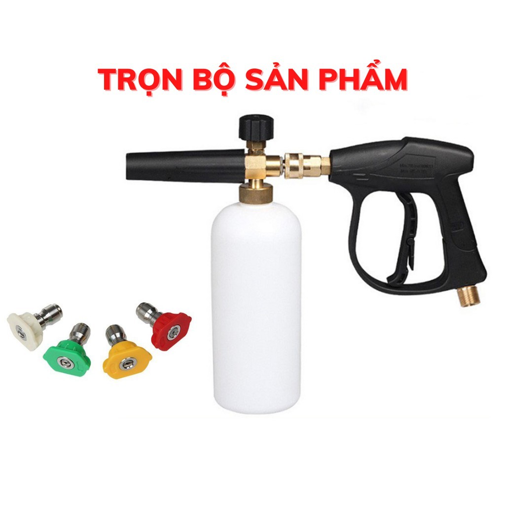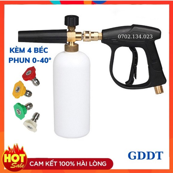 Bộ súng xịt rửa và bình phun bọt tuyết cao cấp cho máy rửa xe áp lực cao kèm bộ 4 béc phun 0 - 40 độ