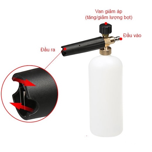 Khi rửa xe bạn mất rất nhiều thời gian cho việc đổ xà phòng lên xe rồi lau chùi hoặc bình xà phòng phun bọt tuyết đi kèm theo máy rửa xe tạo bọt chưa nhiều khiến bạn không hài lòng hay đơn giản là mỗi lần rửa xe bạn muốn phun bọt tuyết phủ trắng toàn bộ xe trông thật đẹp mắt & chuyên nghiệp Bình tạo bọt tuyết rửa xe gắn súng xịt rửa áp lực cao sẽ là lựa chọn lý tưởng cho bạn.- Thông tin Bình xịt bọt tuyết: