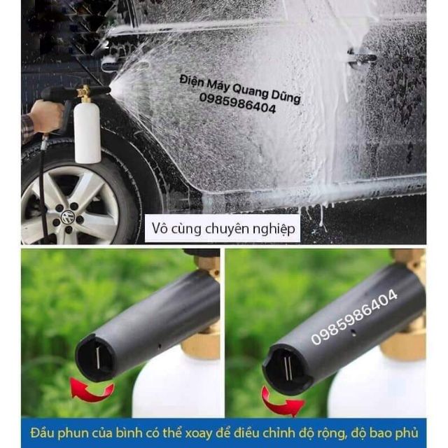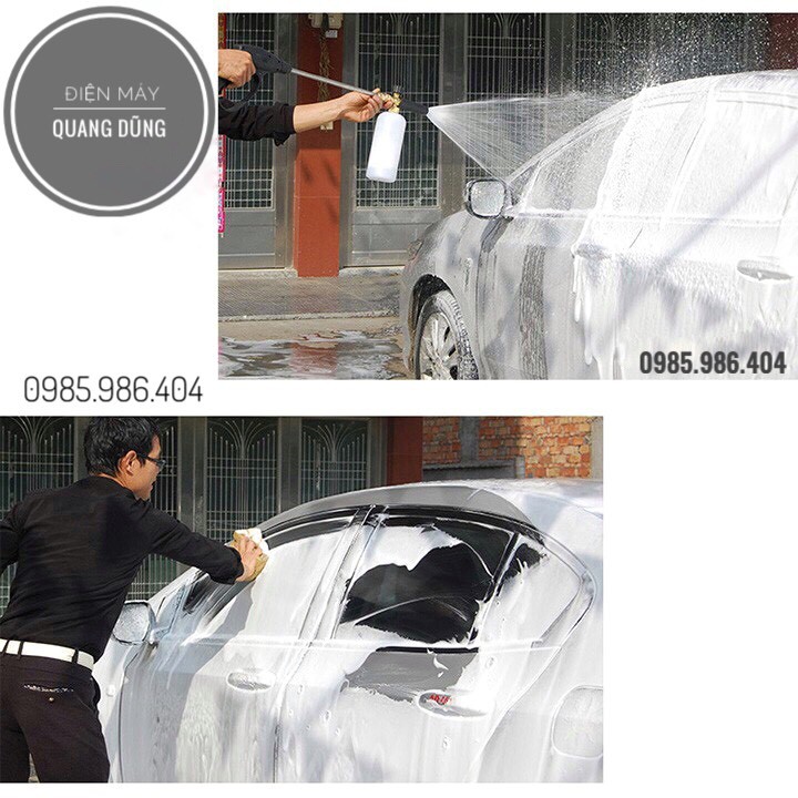 Khi rửa xe bạn mất rất nhiều thời gian cho việc đổ xà phòng lên xe rồi lau chùi hoặc bình xà phòng phun bọt tuyết đi kèm theo máy rửa xe tạo bọt chưa nhiều khiến bạn không hài lòng hay đơn giản là mỗi lần rửa xe bạn muốn phun bọt tuyết phủ trắng toàn bộ xe trông thật đẹp mắt & chuyên nghiệp Bình tạo bọt tuyết gắn súng phun rửa áp lực sẽ là lựa chọn lý tưởng cho bạn.- Thông tin bình tạo bọt tuyết: