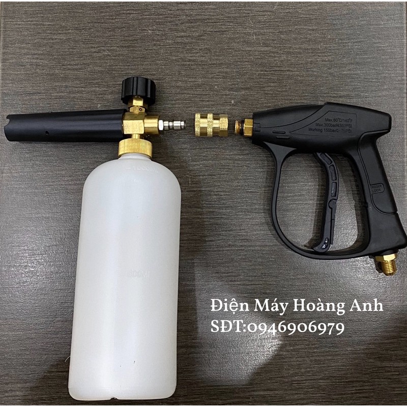 Bộ súng xịt rửa và bình tạo bọt tuyết cao cấp cho máy rửa xe áp lực cao,máy xịt rửa