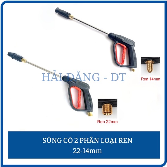 Súng xịt rửa xe áp lực cao kèm ống nối dài 30cm ren 22 và 14mm (kiểu cò đỏ)