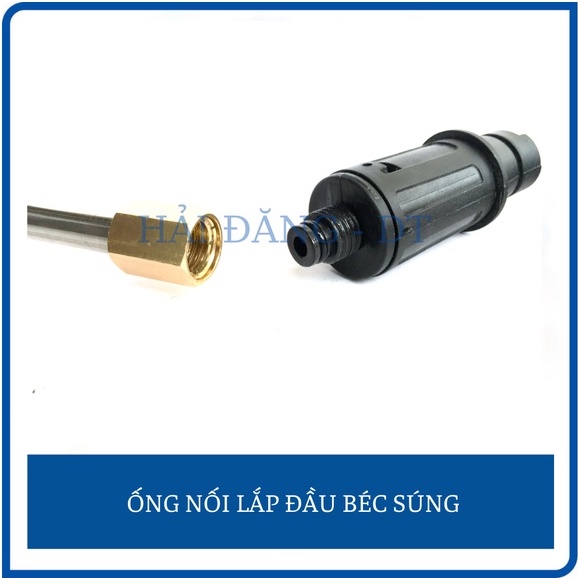 - Ống nối dài có chiều dài lên tới 30cm giúp bạn dễ dàng luôn sâu vào các vị trí khó với tới & tạo 1 khoảng cách nhất định giữa người sử dụng máy bơm xịt rửa xe với vật cần rửa để tránh bắn nước & đảm bảo an toàn hơn.