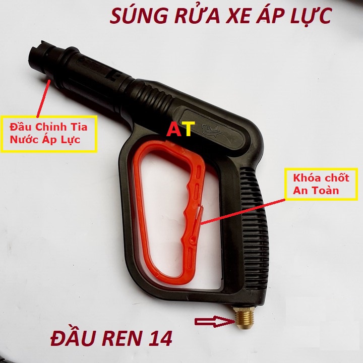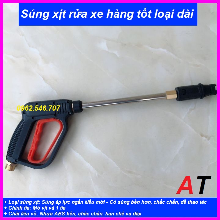 Súng xịt rửa xe loại tốt loại dài ren ngoài 14mm,22mm cho máy xịt áp lực cao, vòi xịt rửa xe áp lực cao