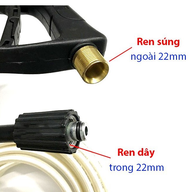 - Ren súng nối dây phun áp lực: 22mm và 14mm
