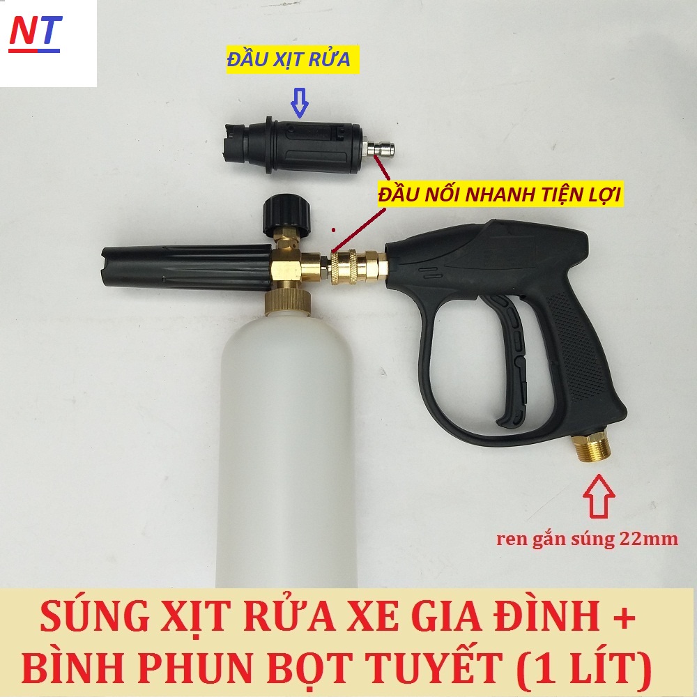 Bộ súng xịt rửa xe và bình tạo bọt tuyết cao cấp cho máy rửa xe áp lực cao, máy xịt rửa (Ren ngoài 22mm và 14mm)