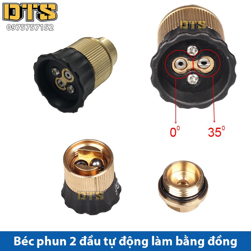 → Đầu phun tự động làm bằng đồng có thể thao rời, điều chỉnh 2 chế độ: 1 tia cực mạnh và tia xòe cho diện tích rộng