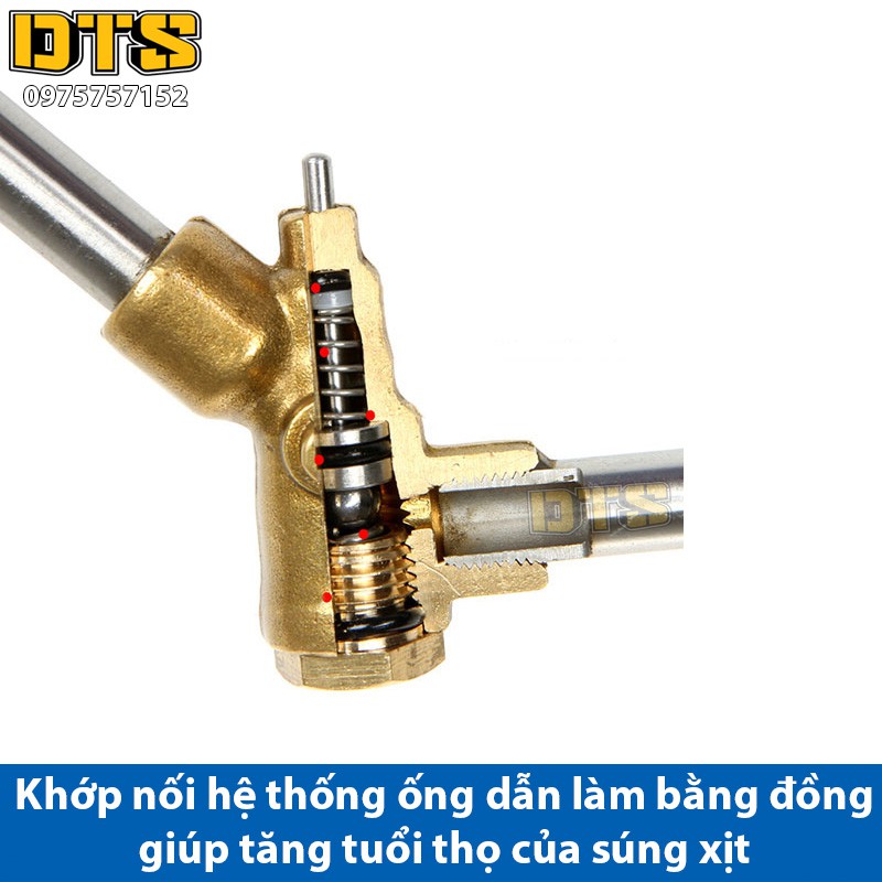 - Lõi trong: Hệ thống ống dẫn bằng hợp kim vô cùng chắc chắn, chịu áp lực nước cao, làm việc liên tục trong thời gian dài. Khớp nối được làm bằng đồng giúp tăng tuổi thọ của súng xịt
