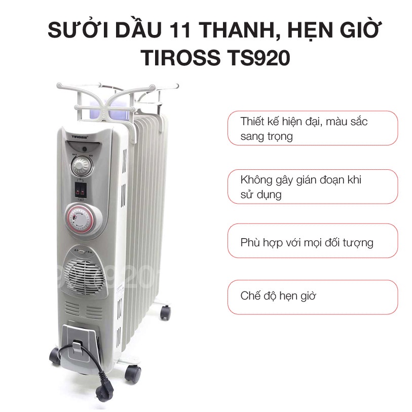 Thiết Bị Điện Gia Dụng > Thiết bị điện gia dụng lớn > Máy sưởi || [Mã ELHA22 giảm 5% đơn 300K] Sưởi dầu 11 thanh, Hẹn giờTiross TS920Còn hàng