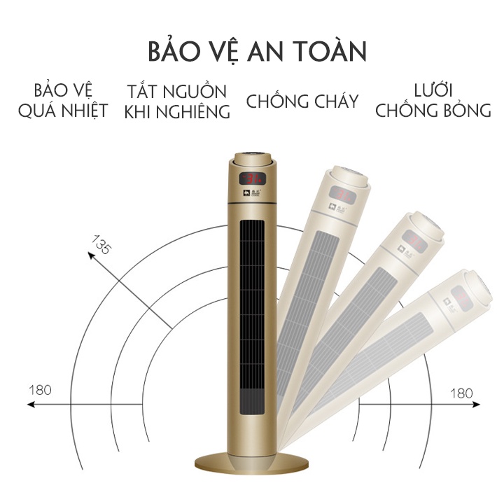 Giới thiệu Cây sưởi điện Camel có điều khiển 2000W lưới chống bỏng tự tắt khi nghiêng an toàn cho trẻ em