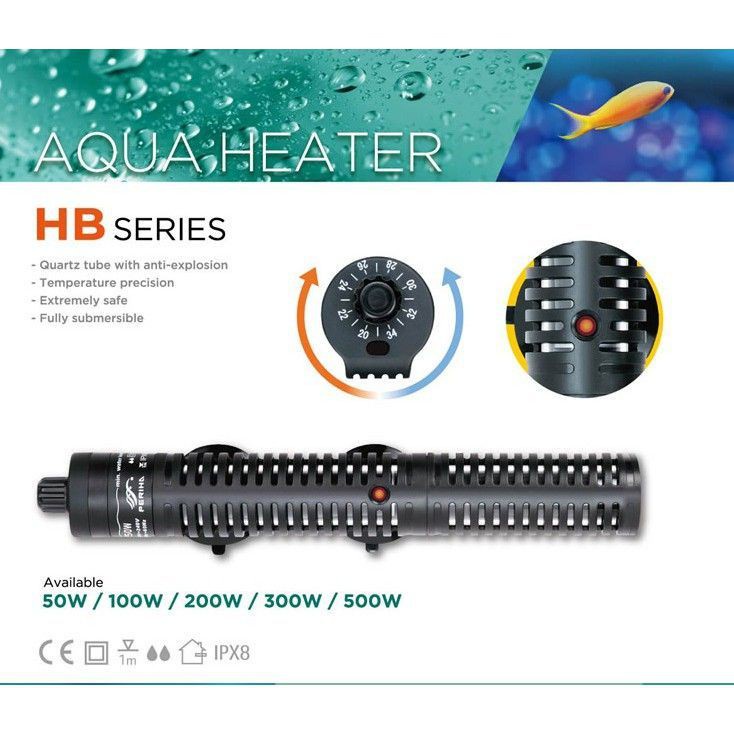 Sưởi hồ Periha HB 50w 100w 200w 300w 500w có vỏ bọc bảo vệ an toànSưởi hồ cá an toàn Heater Periha HB