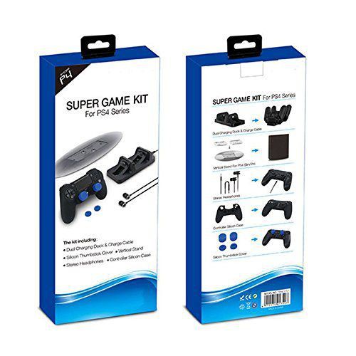 5 Trong 1 Super Game Kit cho PS4 Điều Khiển Dual Phí, thẳng đứng, tai nghe, Silicone Trường Hợp Điều Khiển và Thumbstick BìaGiá GECKO