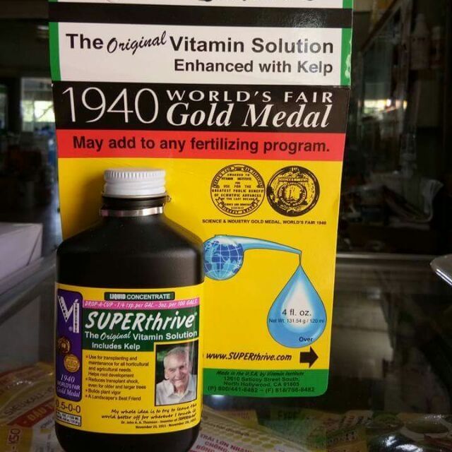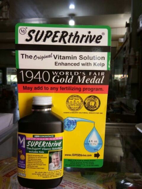 SUPERthrive được một phòng thí nghiệm thử nghiệm của Mỹ (WARF) xác nhận chất lỏng không độc hại – chủ yếu sản phẩm tăng cường sự tăng trưởng cho các thực vật, – được sản xuất từ năm 1940. Nó chứa 0,09% vitamin B 1 , 0,048% 1-Napthyl acetic acid”.