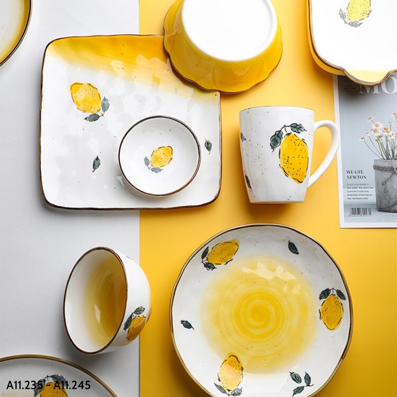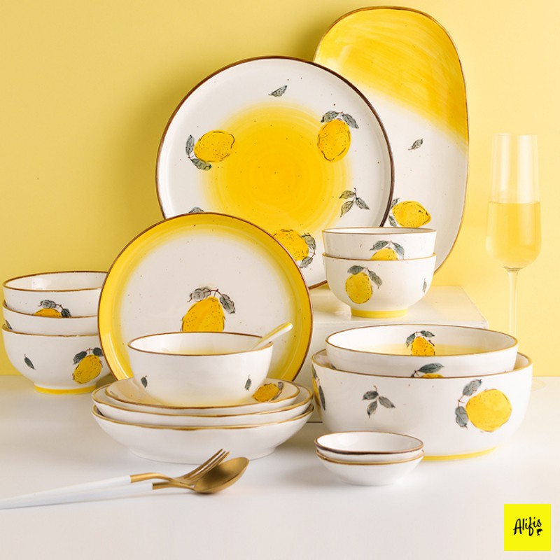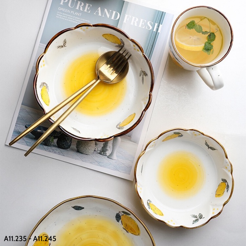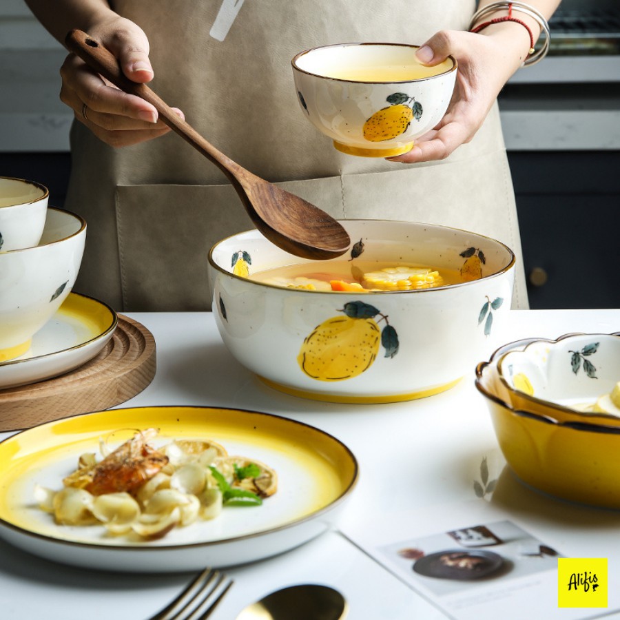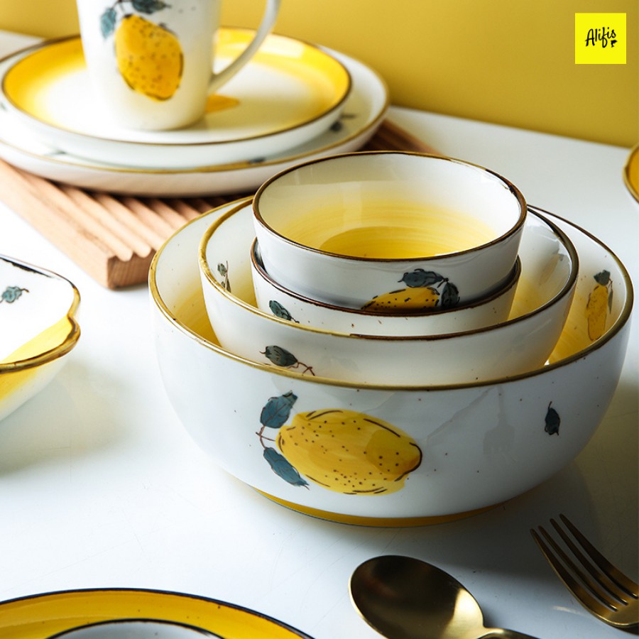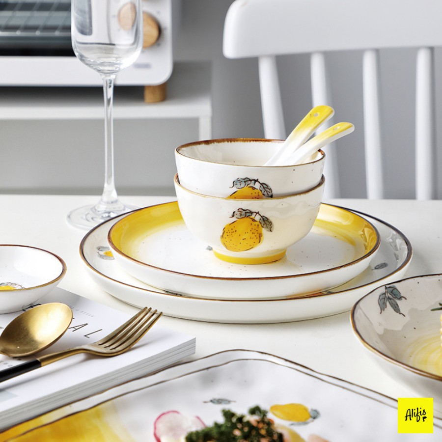 Bộ sưu tập bát đĩa sứ men tiêu cao cấp họa tiết Chanh vàng – Phong cách Bắc Âu Alifis