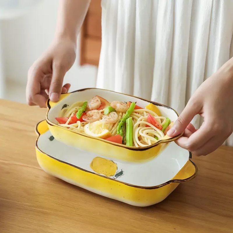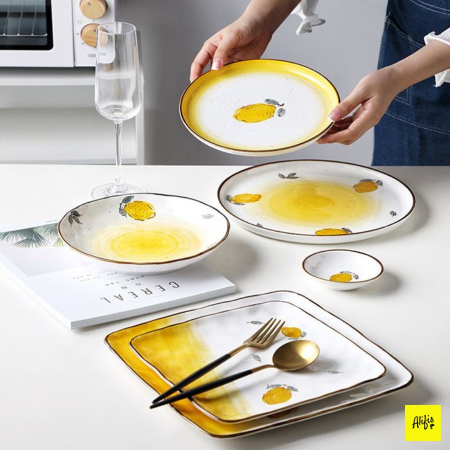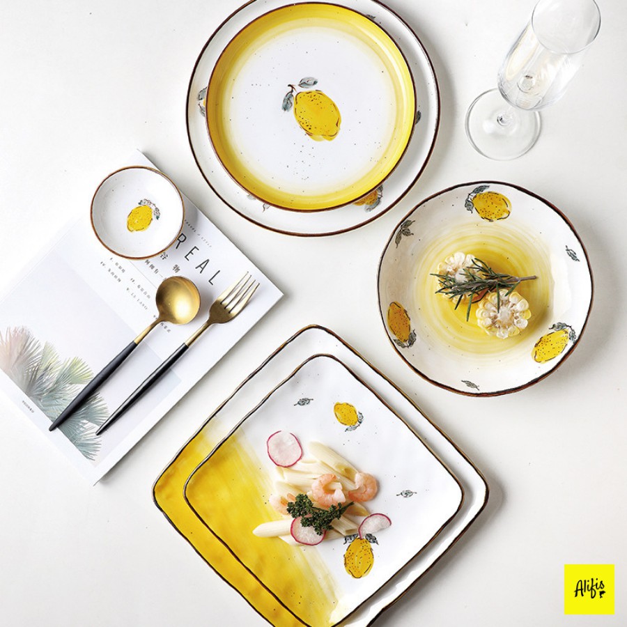Nhà cửa & Đời sống > Bộ đồ bàn ăn > Dĩa || Bộ sưu tập bát đĩa sứ men tiêu cao cấp họa tiết Chanh vàng – Phong cách Bắc Âu AlifisCòn hàng