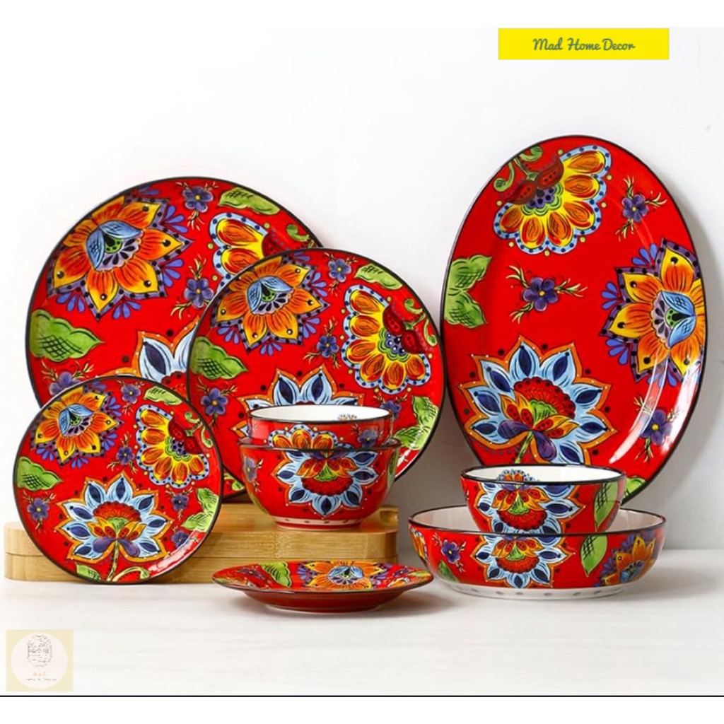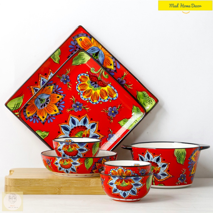 [Bộ bát đĩa hoa hướng dương, bình hoa gốm mỹ nghệ vẽ tay hàng cực phẩm]Bộ bát đĩa hoa hướng dương với hoạ tiết hoa hướng dương vẽ tay nổi bật trên nền sứ đỏ trên lớp men như tráng gương được đánh bóng kĩ càng, từng nét vẽ được chăm chút bởi những nghệ nhân lừng danh làng gốm, màu sắc rực rỡ hệt như những vệt nắng tháng 5 khiến lòng người không khỏi đắm say ngay từ cái nhìn đầu tiên.
