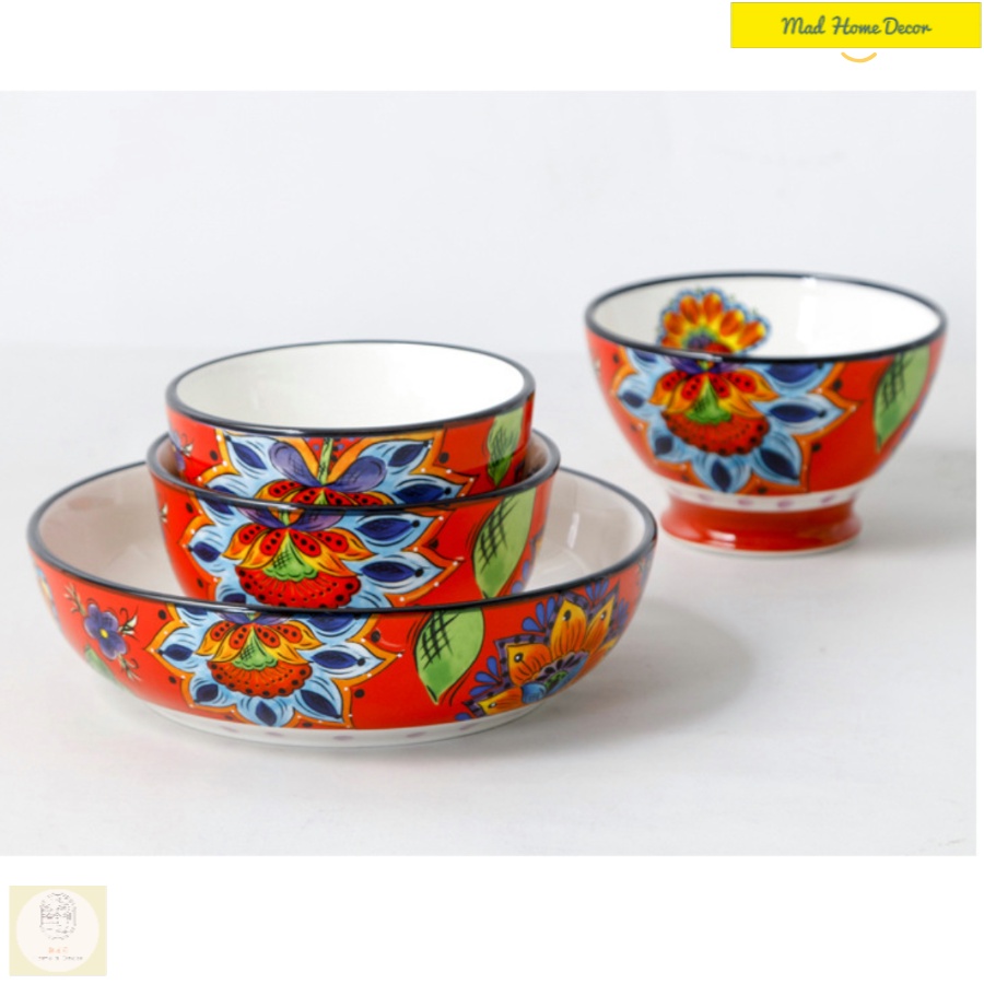Màu trong men + vẽ tay + được làm hoàn toàn thủ công, nung ở nhiệt độ cao từ những nguyên liệu tự nhiên an toàn cho sức khoẻ.