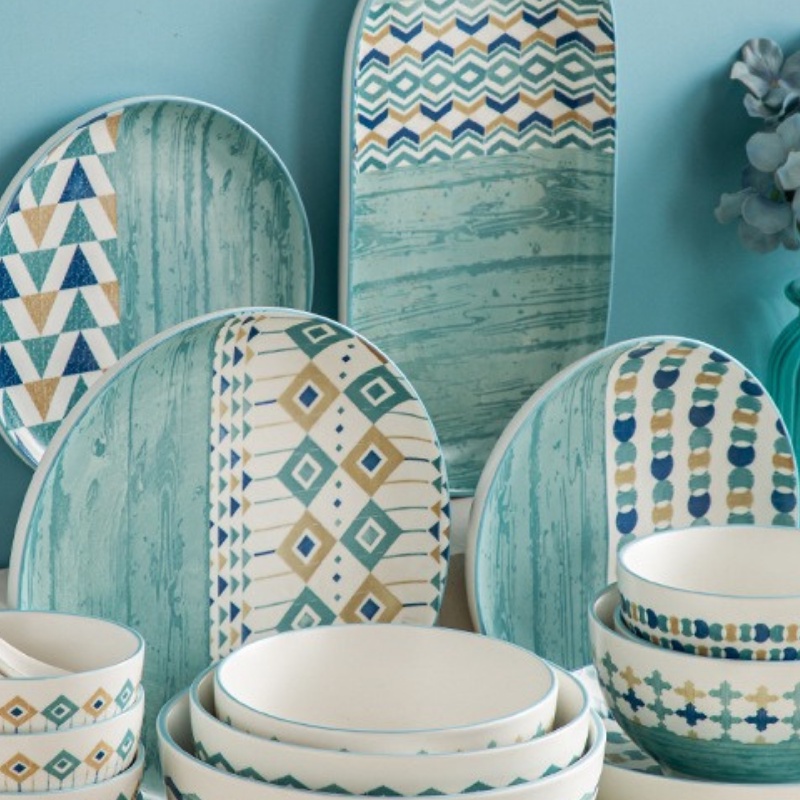 Nhà cửa & Đời sống > Nội thất > Bàn || Bộ sưu tập bát đĩa lẻ hoạ tiết xanh đại dương bằng sứ cao cấp men mờ AlifisCòn hàng