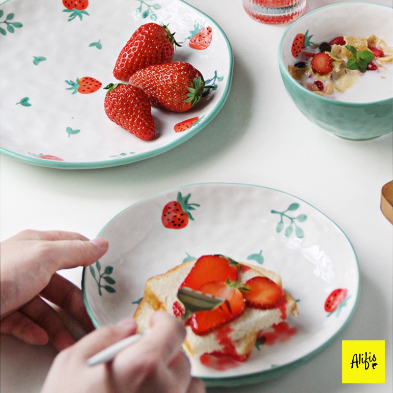 Nhà cửa & Đời sống > Bộ đồ bàn ăn > Dĩa || Bộ sưu tập bát đĩa sứ, bát đĩa decor họa tiết dâu tây xanh, hồng – Phụ kiện bàn ăn (Bán lẻ theo món)Còn hàng