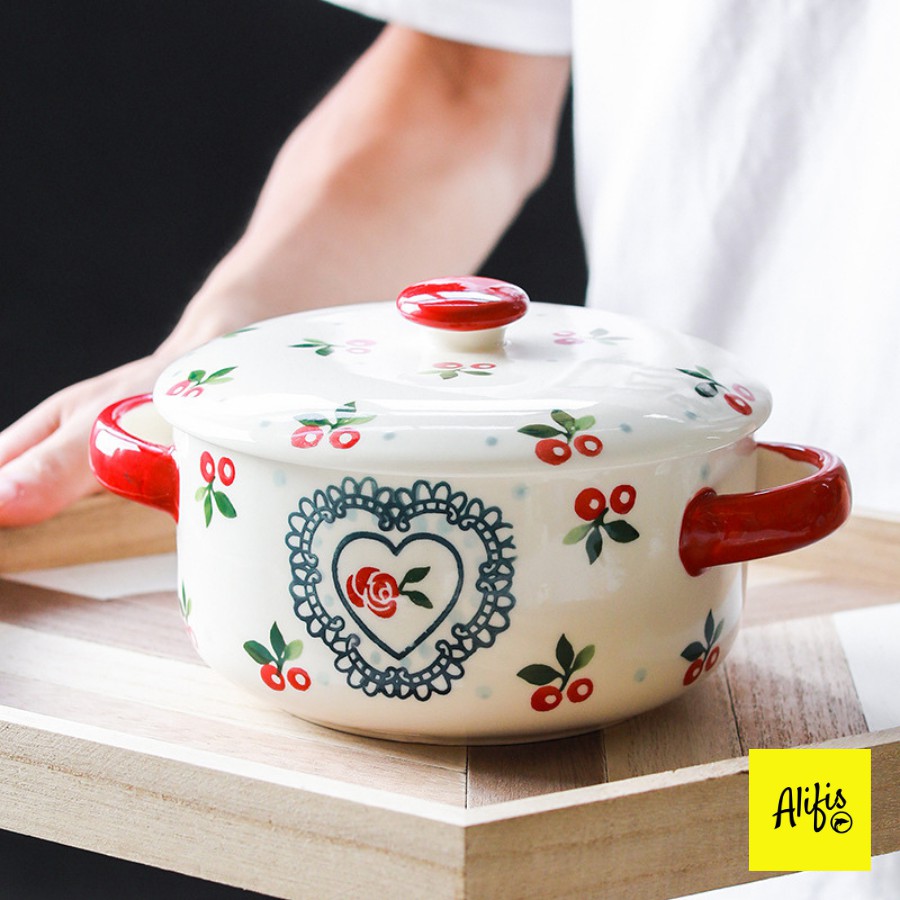 + Bộ sưu tập bát đĩa sứ được thiết kế độc đáo với họa tiết Cherry đỏ vẽ tay siêu yêu ạ.
