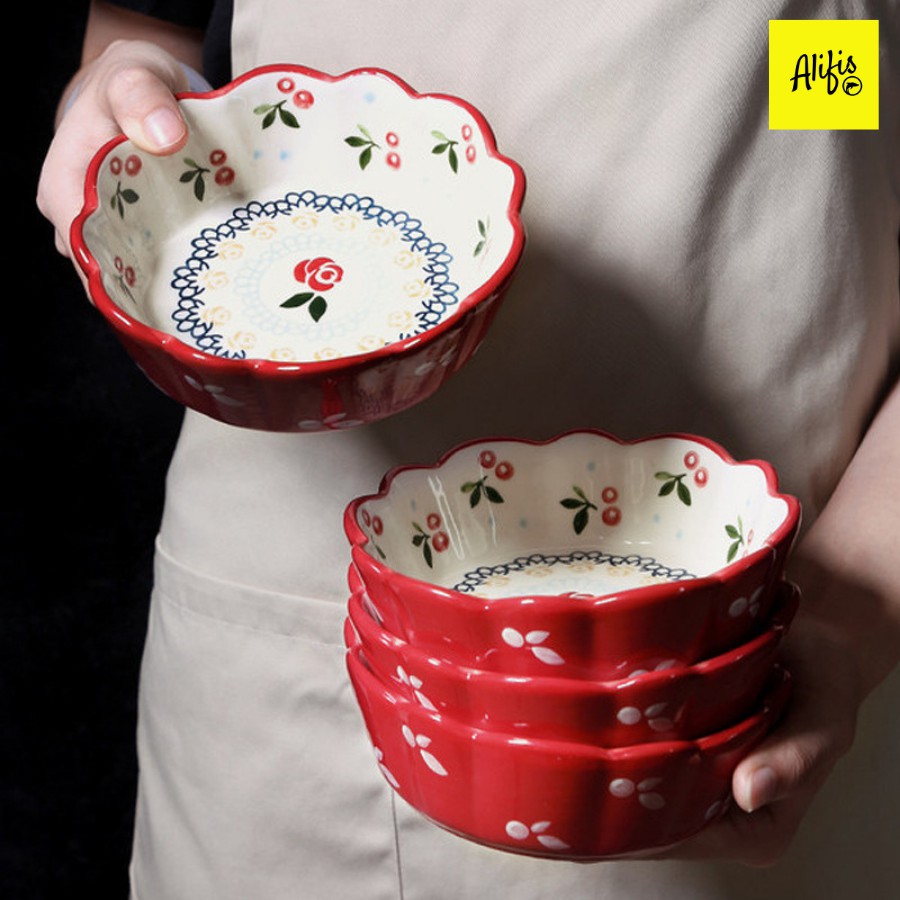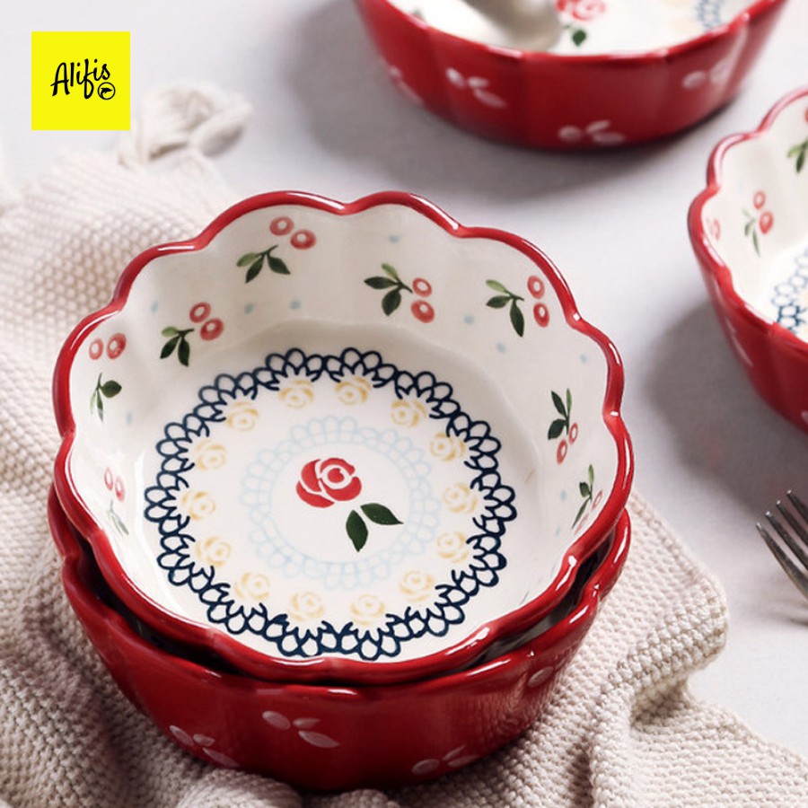 Nhà cửa & Đời sống > Bộ đồ bàn ăn > Dĩa || Bộ sưu tập bát đĩa sứ, bát đĩa decor họa tiết Cherry đỏ phong cách Hàn QuốcCòn hàng