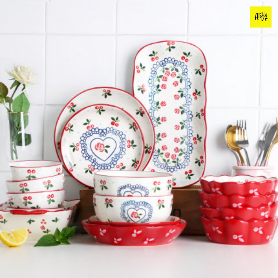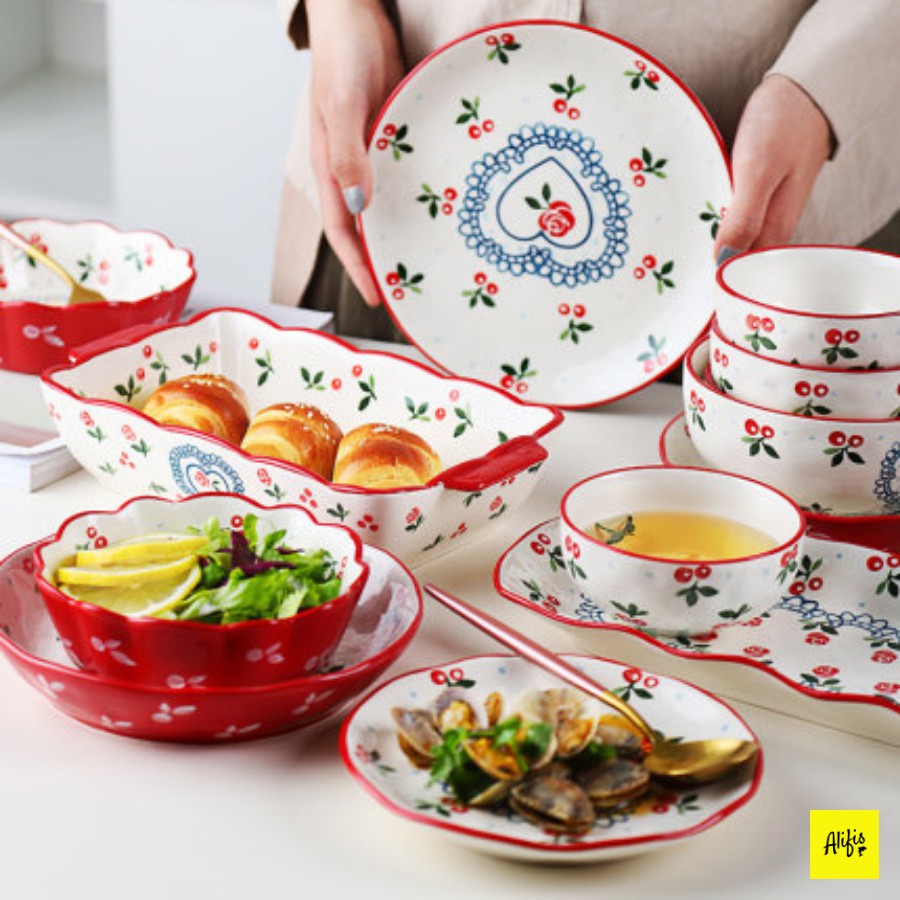 Giới thiệu Bộ sưu tập bát đĩa sứ, bát đĩa decor họa tiết Cherry đỏ phong cách Hàn Quốc