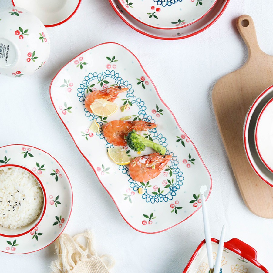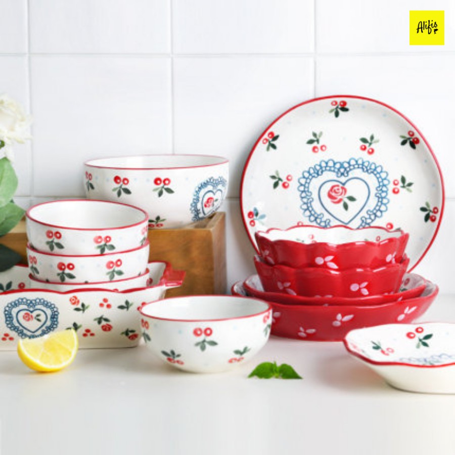 Bộ sưu tập bát đĩa sứ, bát đĩa decor họa tiết Cherry đỏ phong cách Hàn Quốc