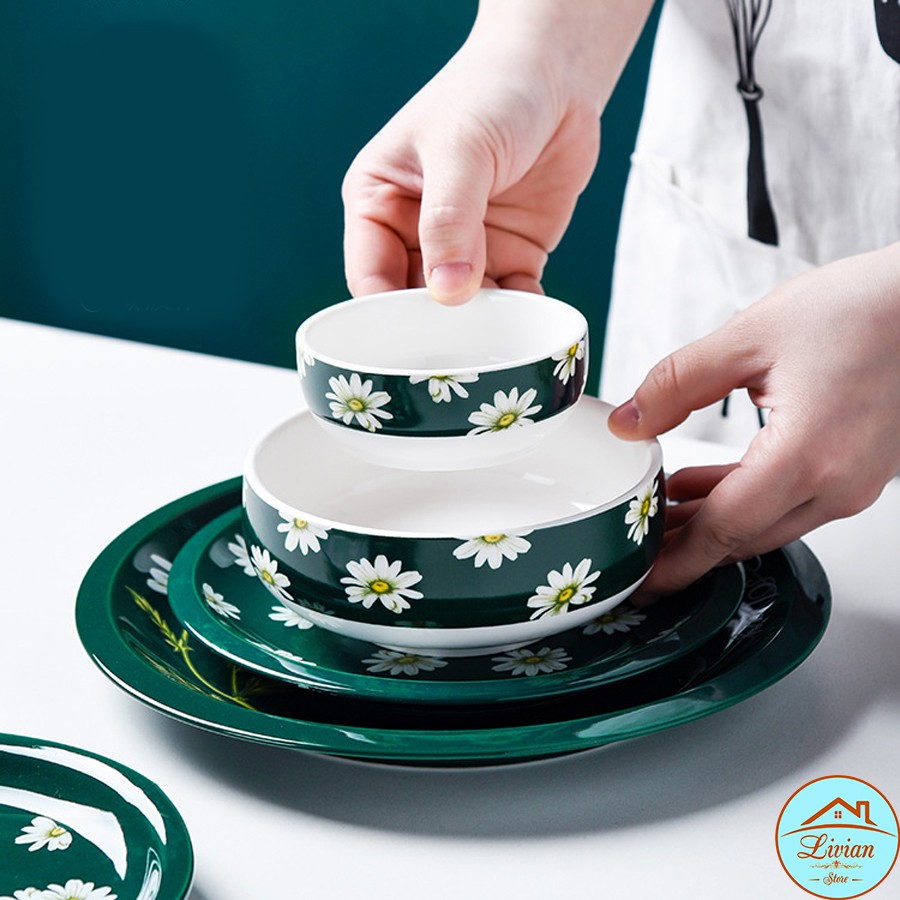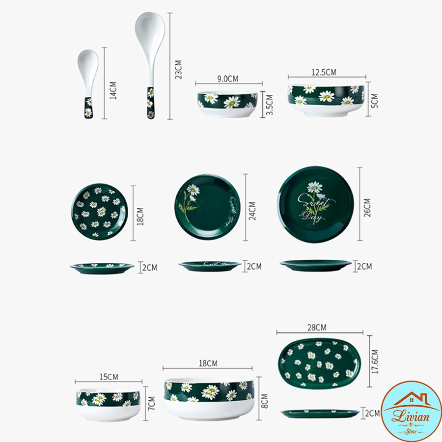 -Bộ sưu tập bát thìa được thiết kế độc đáo với họa tiết hoa cúc họa mi sang chảnh siêu đáng yêu ạ.