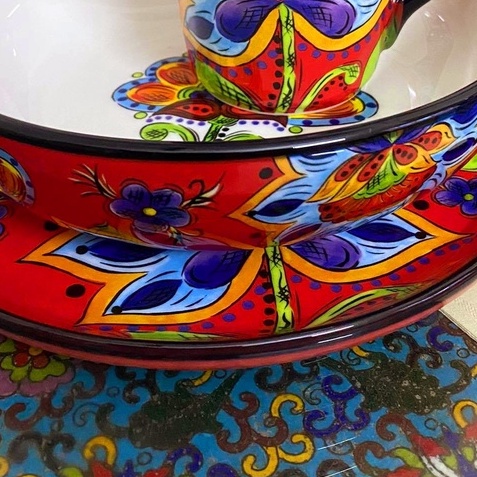Màu sắc rực rỡ, hoa văn tinh tế, mỗi nét vẽ đều hoàn hảo và sống động như 1 bức tranh. Các chị có thể đặt trưng bày hoặc trình bày các món đều hết ý luôn ạ ❤