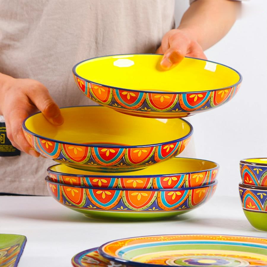Bộ sưu tập đĩa sâu lòng, tô salad - Hàng mỹ nghệ vẽ tay OMK - An toàn khi sử dụng