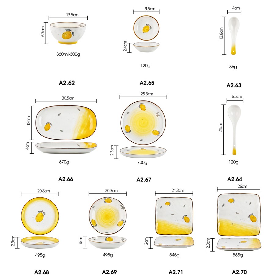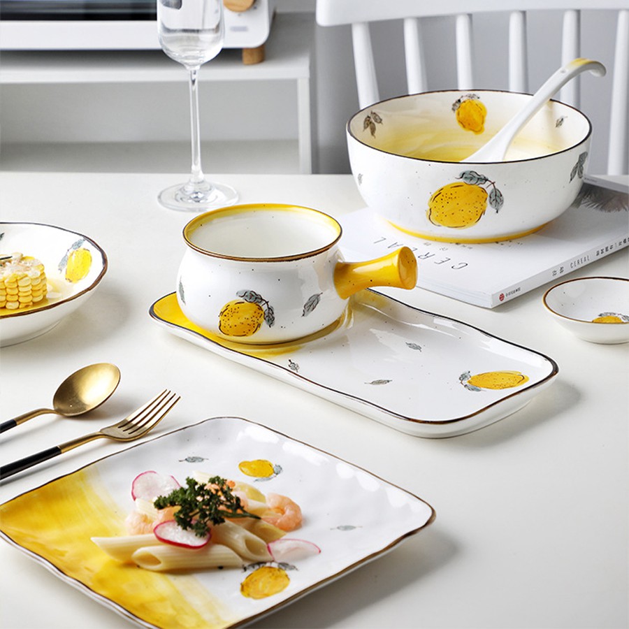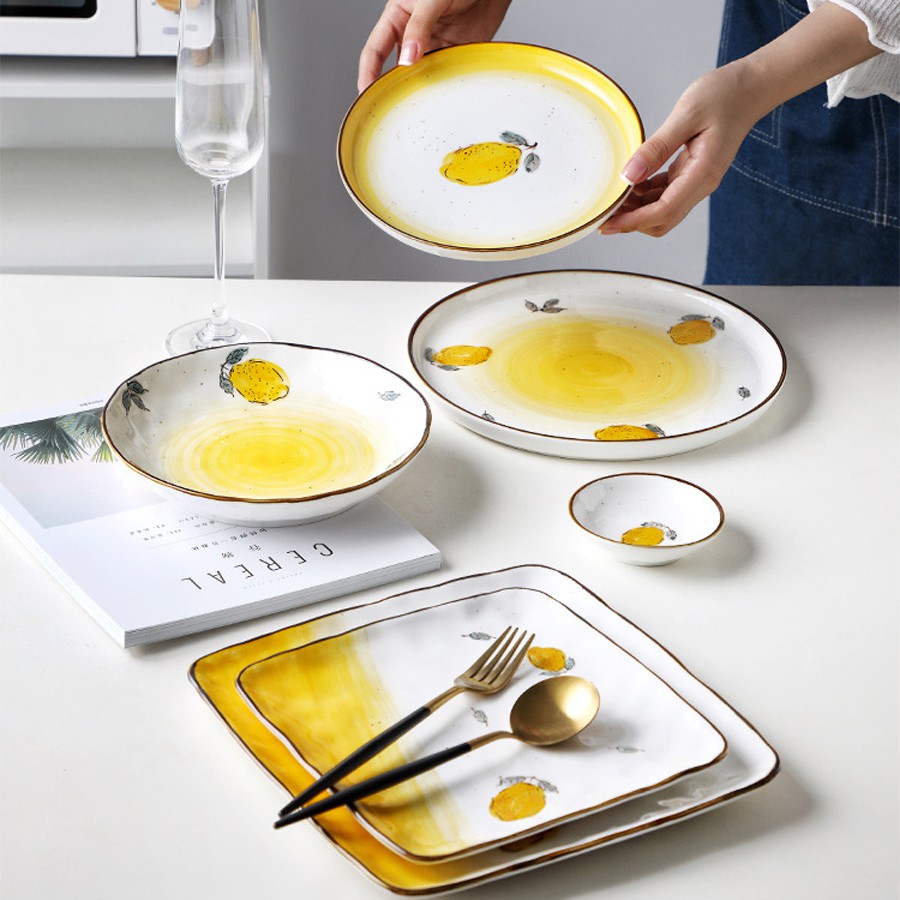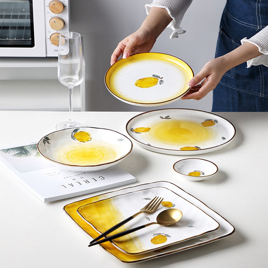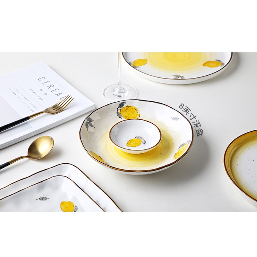 Nhà cửa & Đời sống > Bộ đồ bàn ăn > Dĩa || Bộ sưu tập đĩa sứ họa tiết chanh vàng nhiều kích thướcCòn hàng
