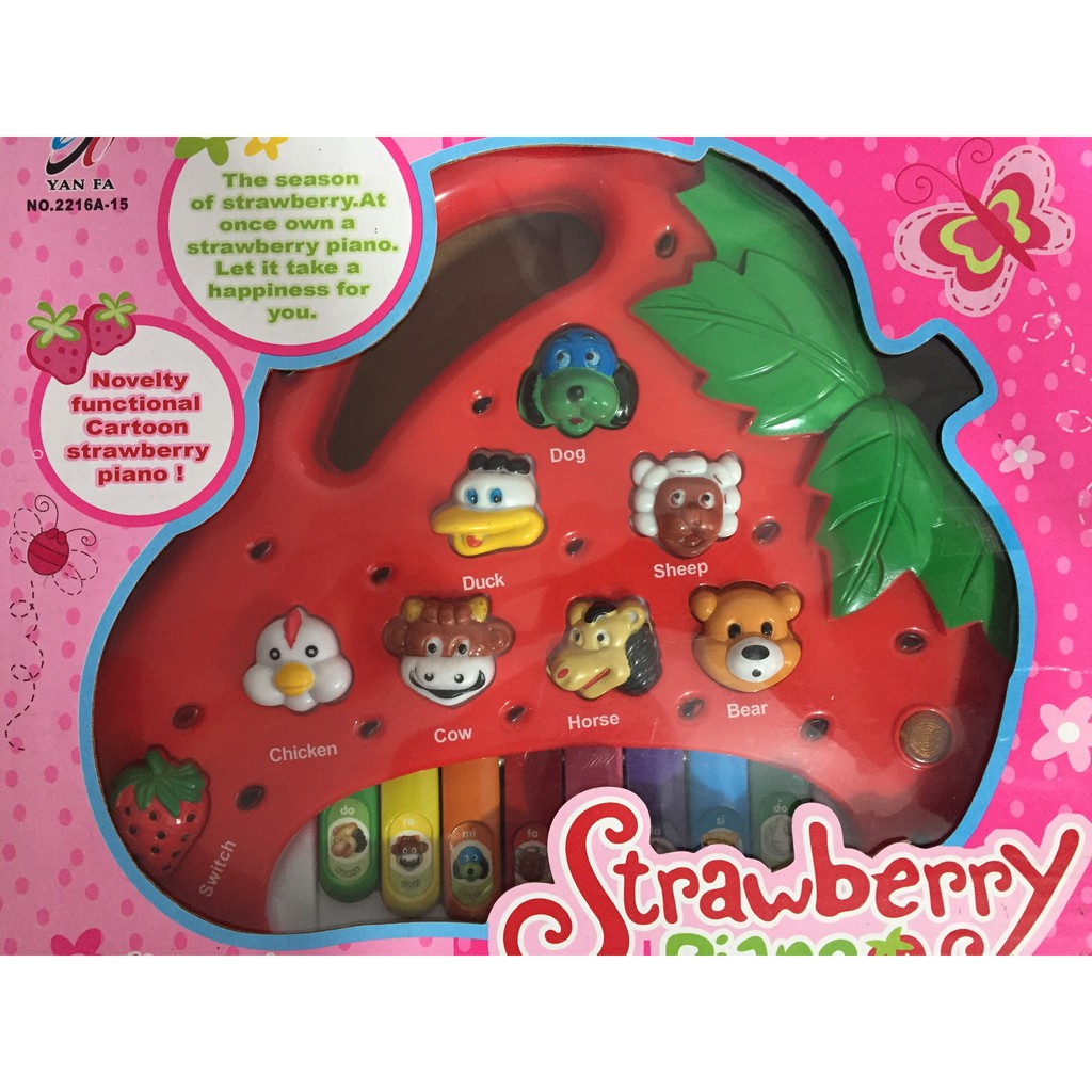 1. Piano Trái Dâu, size hộp:24*21*5 cm, pin 1,5V, có 7 động vật.