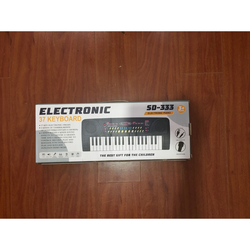 10. Đàn Piano Điện Size Khủng Long, size hộp: 60*20*9 cm, pin AA x 3 size 1,5V pin, 37 phím, 8 thể loại nhạc, 10 style nhạc khác nhau.