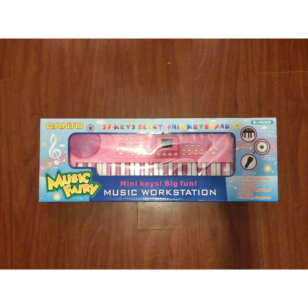 5. Piano Hồng Dịu Dàng, size hộp:45*6*6 cm, pin AA x 3 size 1,5V, 37 phím, có microphone & trống.