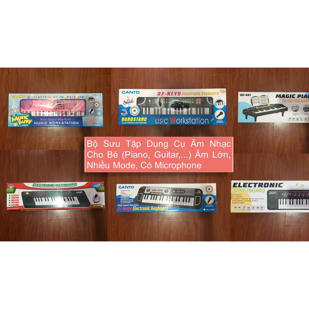 Bộ Sưu Tập Dụng Cụ Âm Nhạc Cho Bé (Piano , Guitar ,...) Âm Lớn, Nhiều Mode, Có Microphone