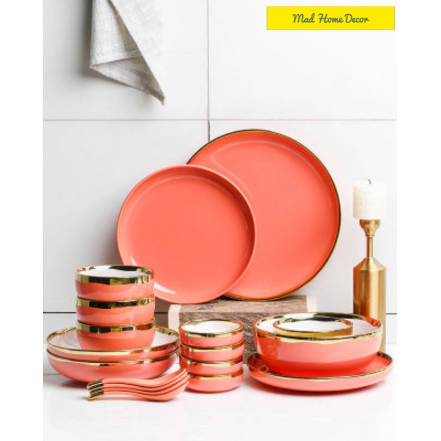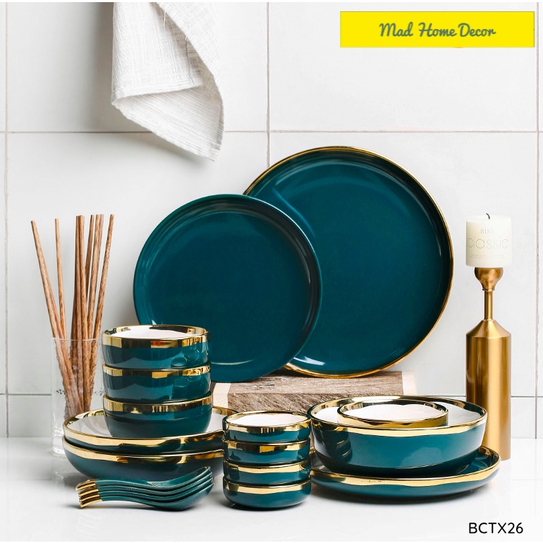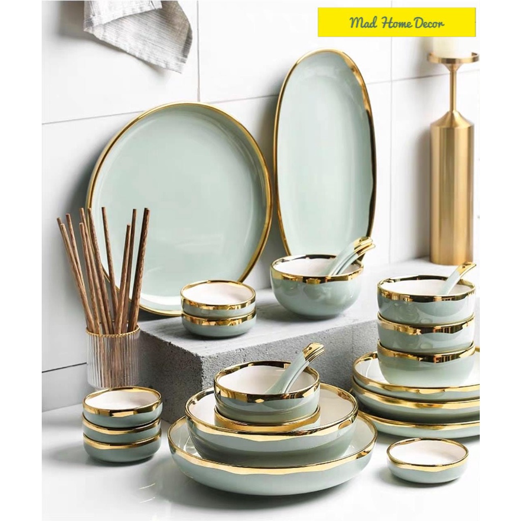 Nhà cửa & Đời sống > Bộ đồ bàn ăn > Dĩa || Bộ sưu tập set 26 món viền vàng-3 màu sang chảnh, phong cách Châu ÂuCòn hàng