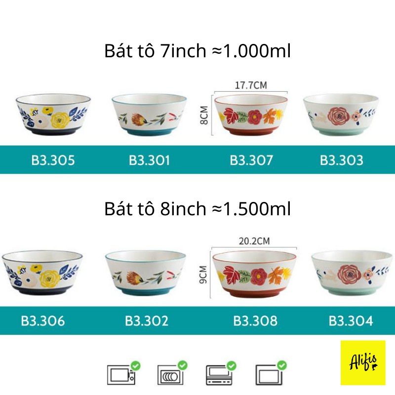 Nhà cửa & Đời sống > Bộ đồ bàn ăn > Tô || Bộ sưu tập tô sứ, bát tô ăn mì họa tiết hoa bốn mùa xinh xắn – phụ kiện bàn ănCòn hàng