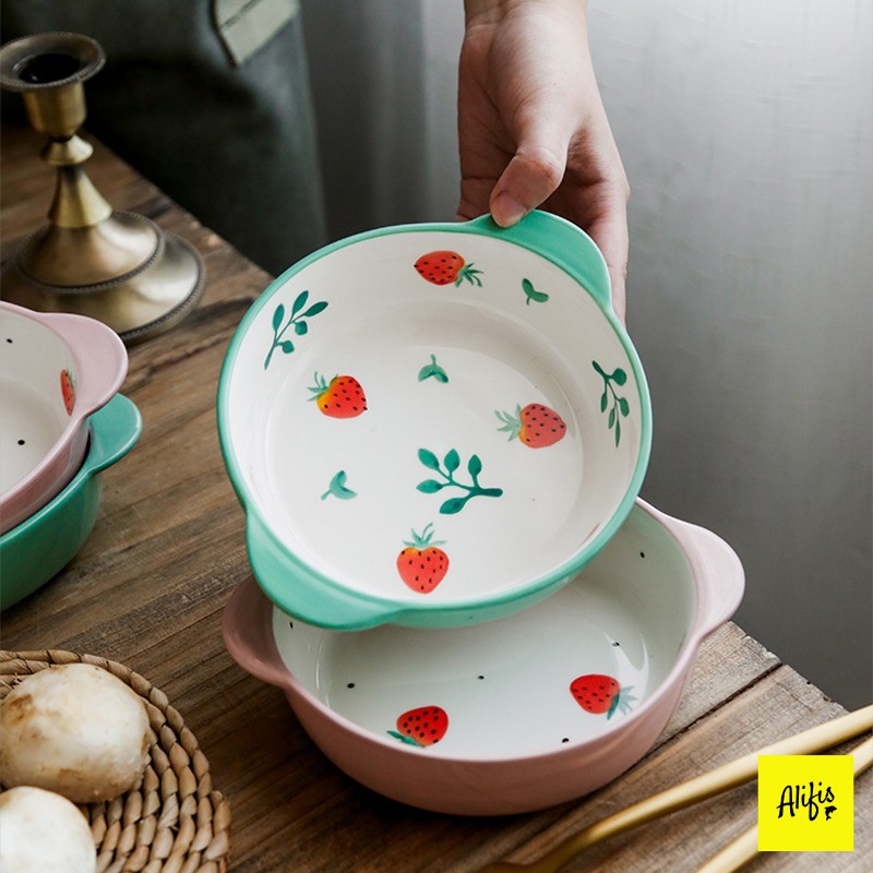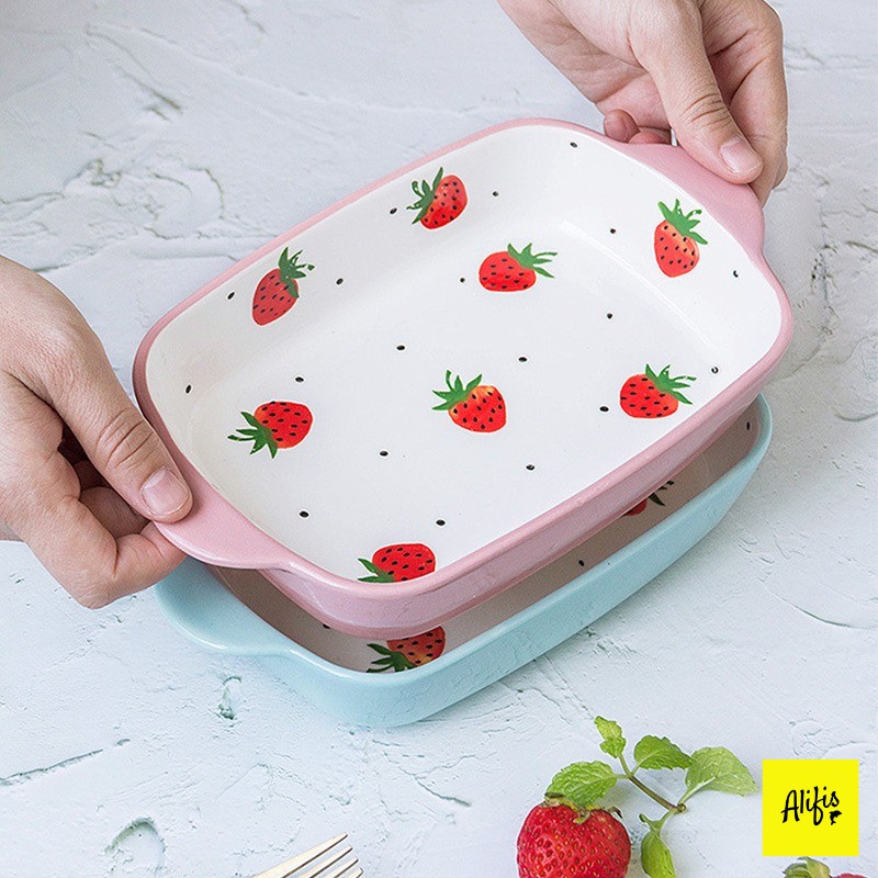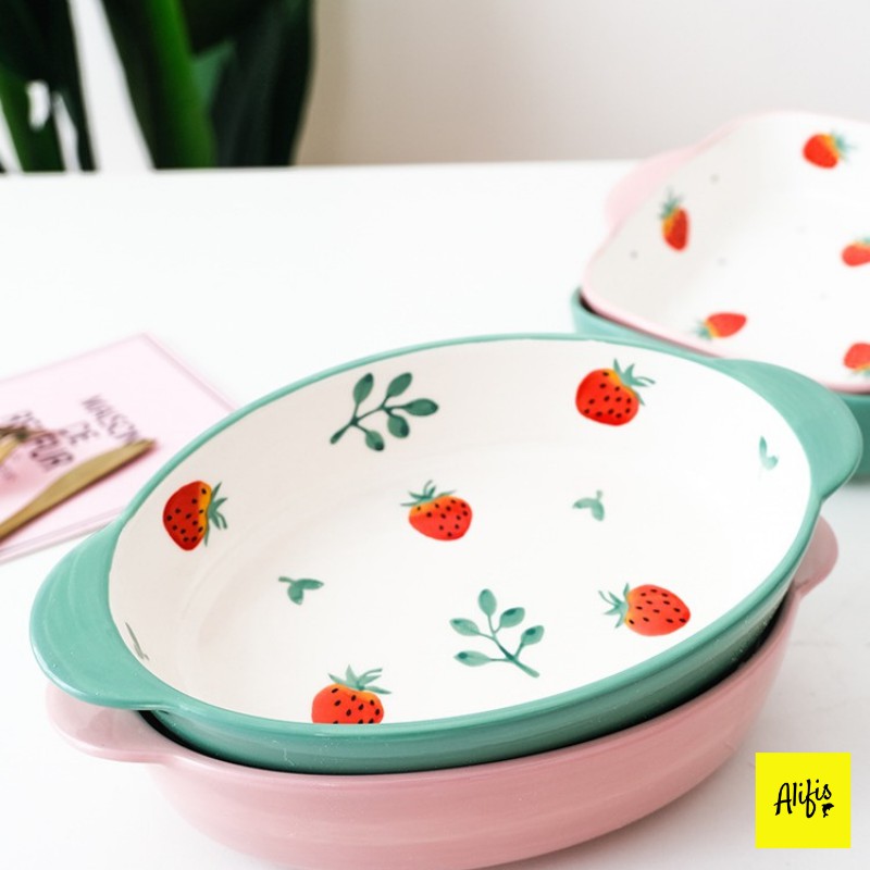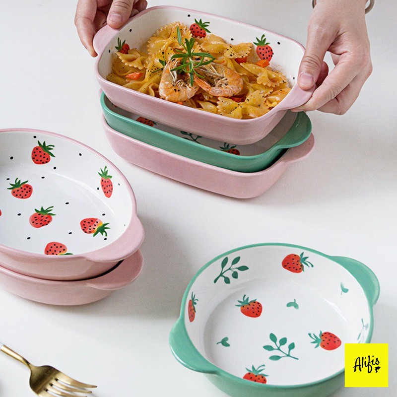 Nhà cửa & Đời sống > Dụng cụ nhà bếp > Nồi || Bộ sưu tập tô sứ, khay nướng có tay cầm họa tiết dâu tây xanh, hồng dùng được lò nướng, nồi chiên không dầuCòn hàng