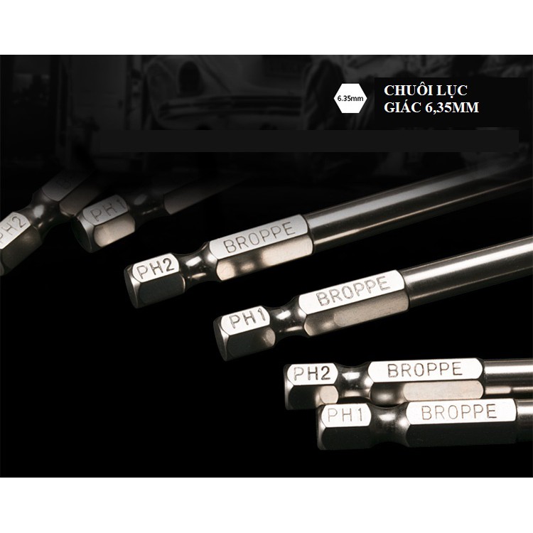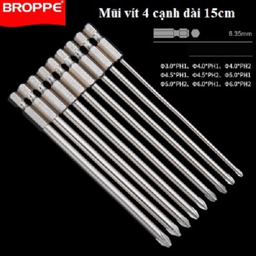 Bộ đầu tô vít 4 cạnh chuôi lục giác 6,35mm (1/4) phù hợp với máy bắt vít.- Thương hiệu Broppe