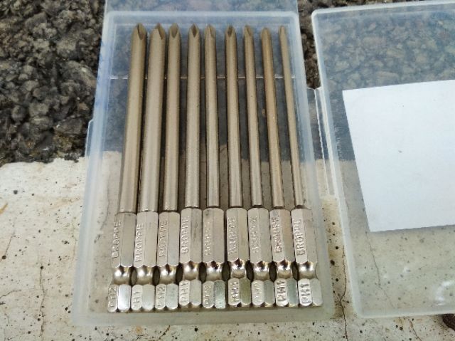 - Bộ 6 mũi tô vít chuôi lục dài 20cm gồm các mũi: 4mmPH1, 4mmPH2, 4,5mmPH1, 5mmPH1, 5mmPH2, 6mmPH2.