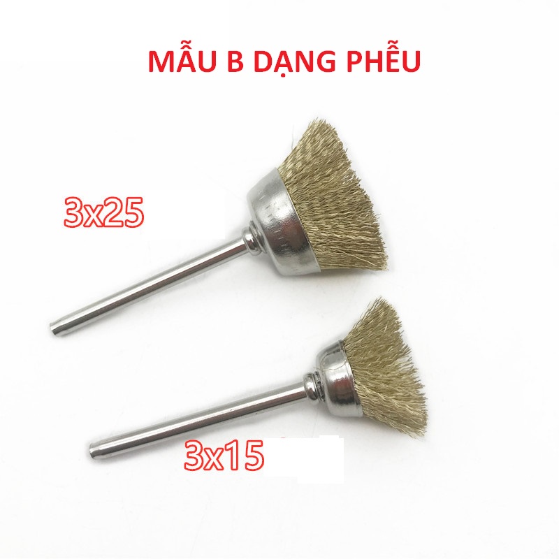SV Chổi đánh rỉ sợi đồng cho máy mài khuôn trục 3mm (bán lẻ)
