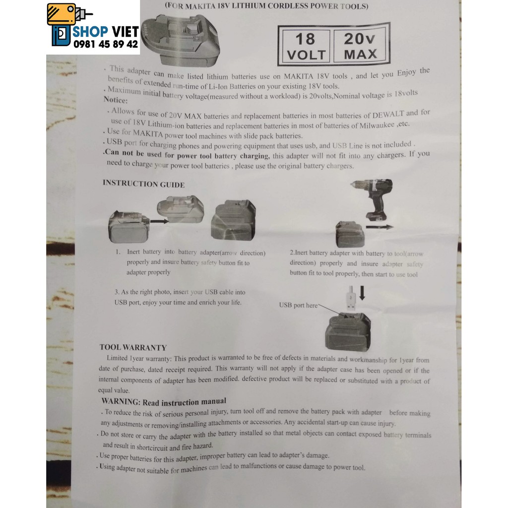 Giới thiệu SV Đế chuyển pin Liion các loại 18V thành pin Makita 18V
