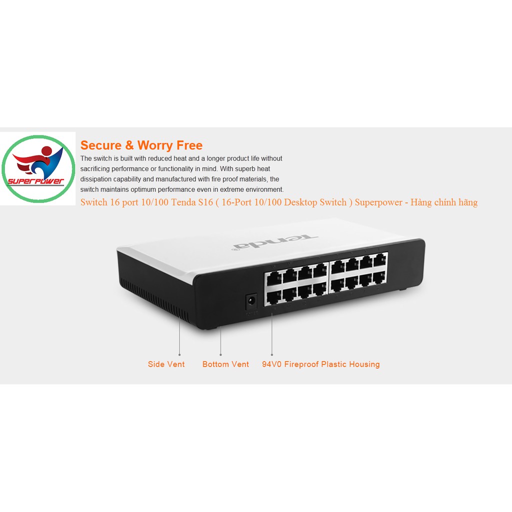 Máy tính & Laptop > Thiết Bị Mạng > Bộ chia mạng || Switch 16 port 10/100 Tenda S16 ( 16-Port 10/100 Desktop Switch ) Superpower - Hàng chính hãngCòn hàng