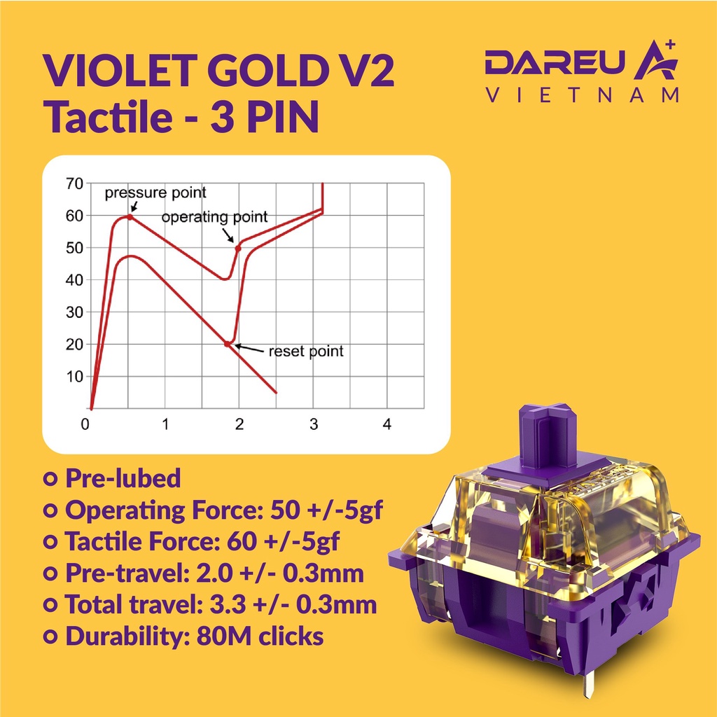 Máy tính & Laptop > Chuột & Bàn Phím > Bàn Phím Máy Tính || Switch bàn phím Dareu Switch Lẻ Blue Sky / Violet Gold Lube Sẵn Chính HãngCòn hàng